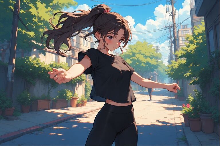 Ana wasn’t performing in a theater or a fancy hall. No, she was dancing beside the street under the sun, and that’s exactly what made it magical. The sunlight caught every swirl of her skirt, every tap of her shoes, and every playful step, turning a simple pavement into a radiant dance floor. Passersby couldn’t help but pause, smile, and maybe even tap along to the beat.