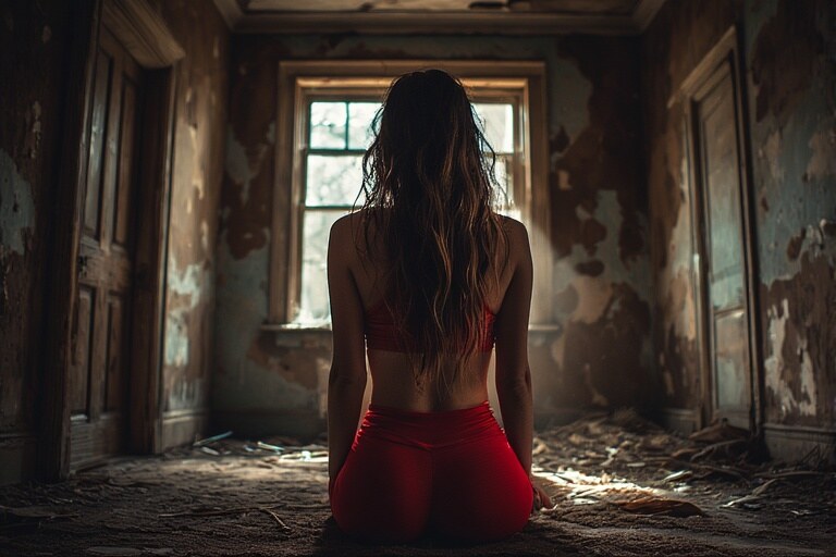 Inside the abandoned house, dust motes danced lazily in streaks of sunlight sneaking through broken windows. Nina stepped carefully over cracked floorboards, her red wetlook leggings shining like they had their own spotlight. The place smelled like history, mystery, and maybe a hint of last year’s Halloween party but she didn’t mind. Adventure was always more fun with a little edge.