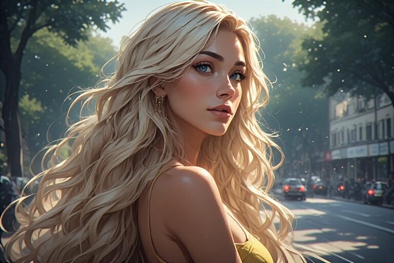 Parks are no exception. Joggers slow down to admire her effortless style, dogs seem to wag a little extra in her direction, and even pigeons pause mid-strut, apparently distracted by the flowing golden hair. Her confidence isn’t just in her appearance it’s in her energy, her warmth, and the way she owns the space she moves through.